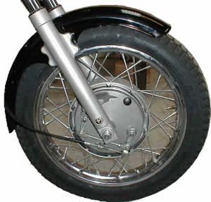 to Piolli forks, with new fork mounted mudguard. The brake and wheel are